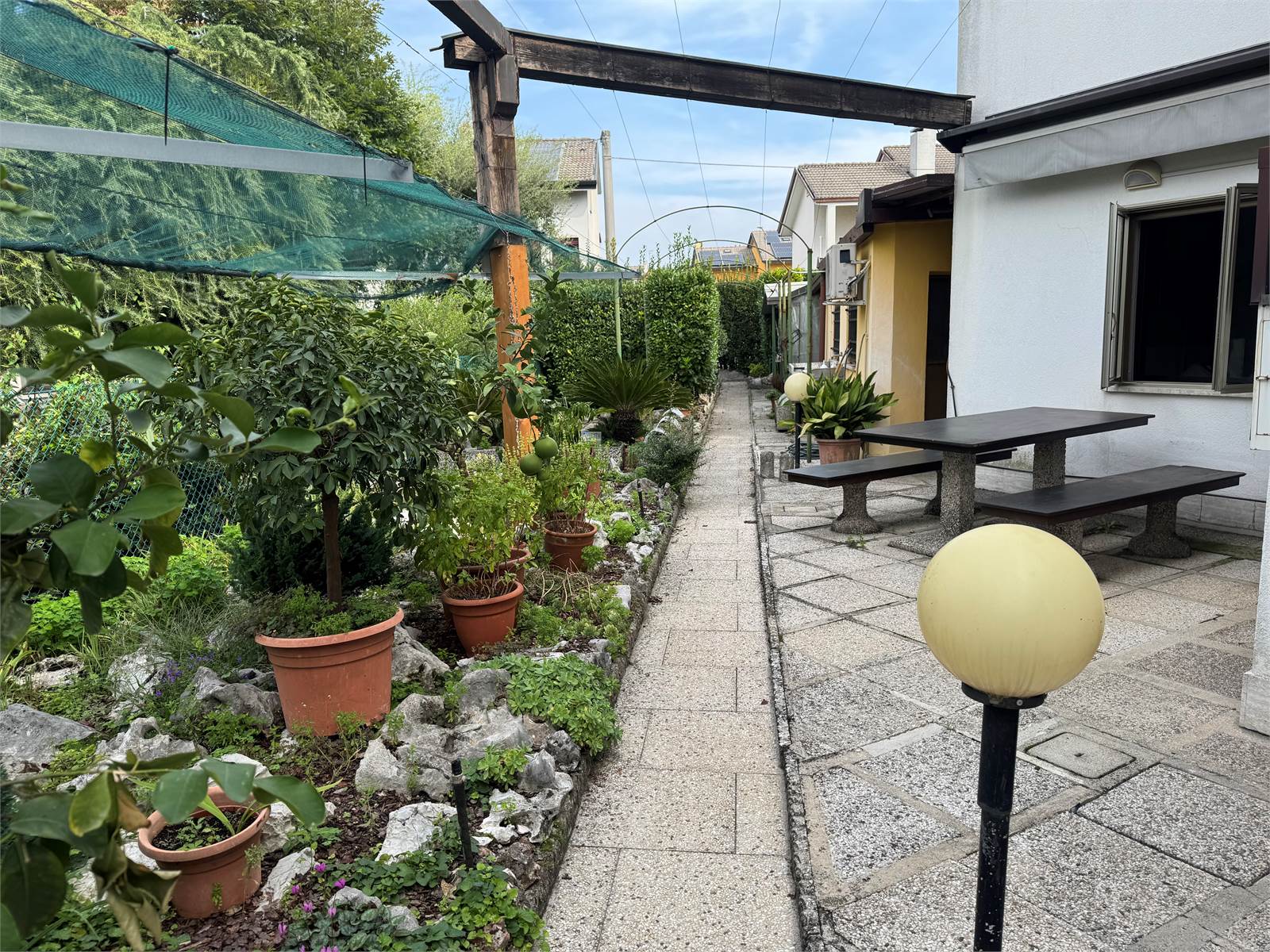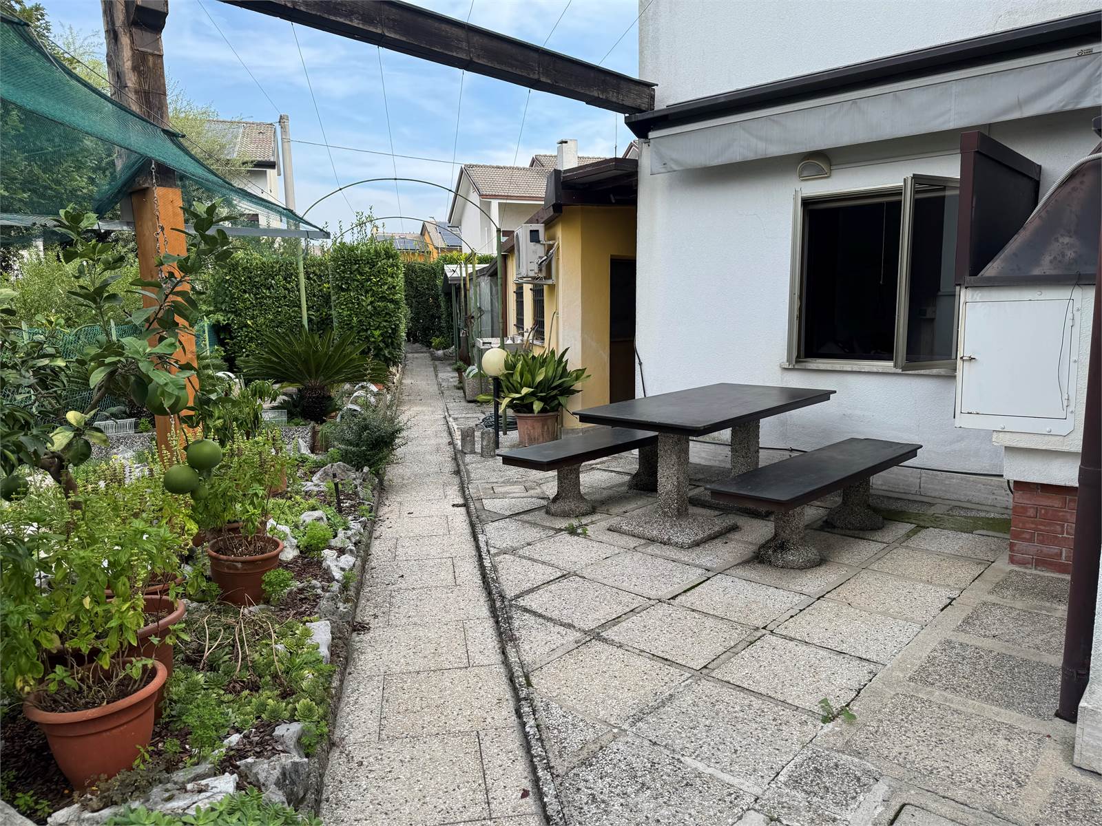 Non lontana dal centro, porzione di bifamiliare oggi composta di due appartamenti: uno al piano terra con una camera, soggiorno, cucina e bagno; il secondo al primo piano di zona giorno openspace, 2 bagni, 2 camere matrimoniali e una camera singola. All'ultimo piano c'è un terrazzone di circa 50 mq. L'abitazione ha un grande giardino dove c'è un locale accessorio, che consente un ampliamento fino ad ulteriori 330 mq. Ben tenuta, libera in tempi brevi